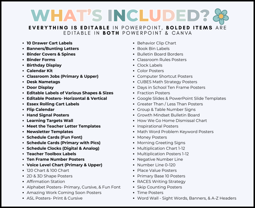 Also, I decided to make everything in the modern calm colors bundle text-editable! I know that there are often things we as teachers need to customize to suit our students or classroom, so I wanted to make everything text- editable!