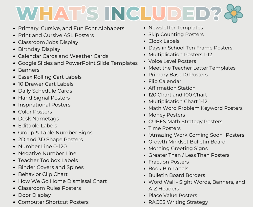 This Modern Calm Colors MEGA bundle has more than 1,700 pages across 60+ resources. It’s packed with everything from math and ELA posters to labels, organizational items, classroom management tools, and more.
