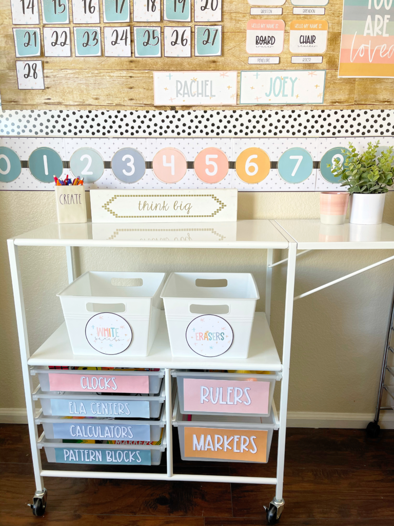 I purchased this teacher toolbox from Amazon and spray-painted it blue! (Also, I’ve used this blue toolbox for every decor theme and feel like it goes well with EACH theme 🙂 )